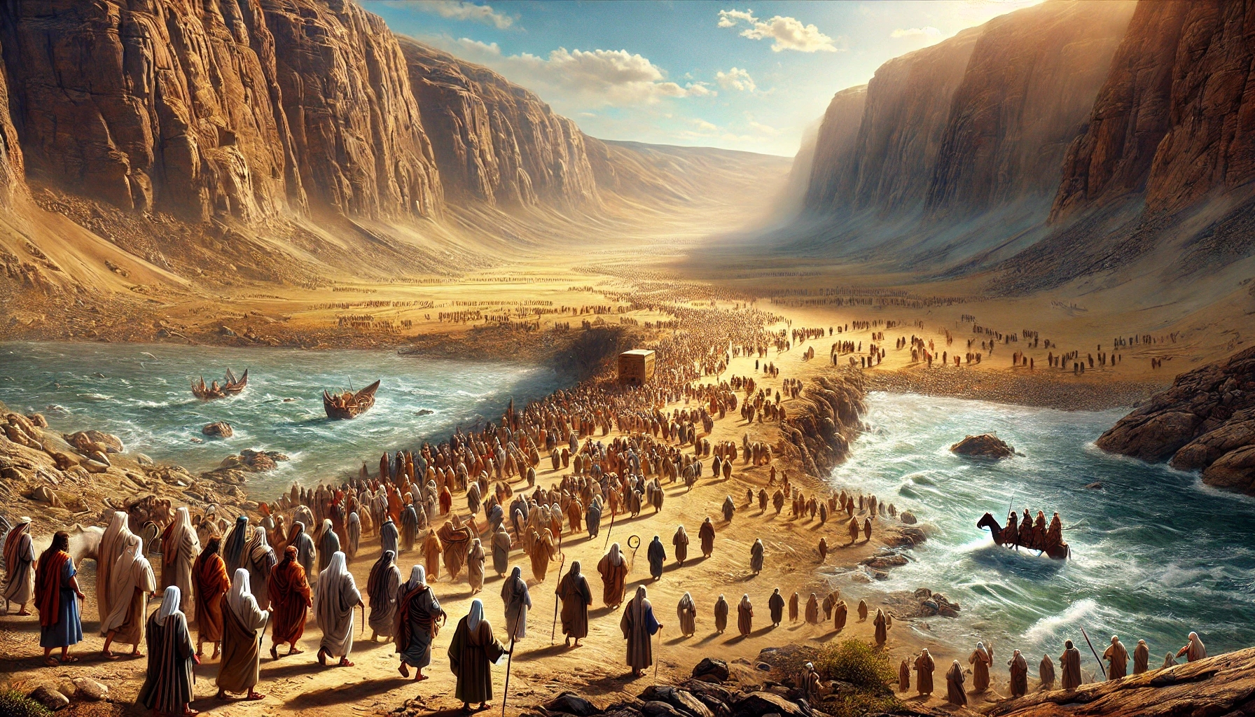 After the death of Moses, a new chapter begins: Joshua takes over the leadership, the people stand on the threshold of the promised land, yet the Jordan at flood stage is the first great obstacle. But God remains presentβand reveals His power through a new miracle. Chapter 44 describes this decisive step of faith, the transition from the wilderness into the promised inheritance.
